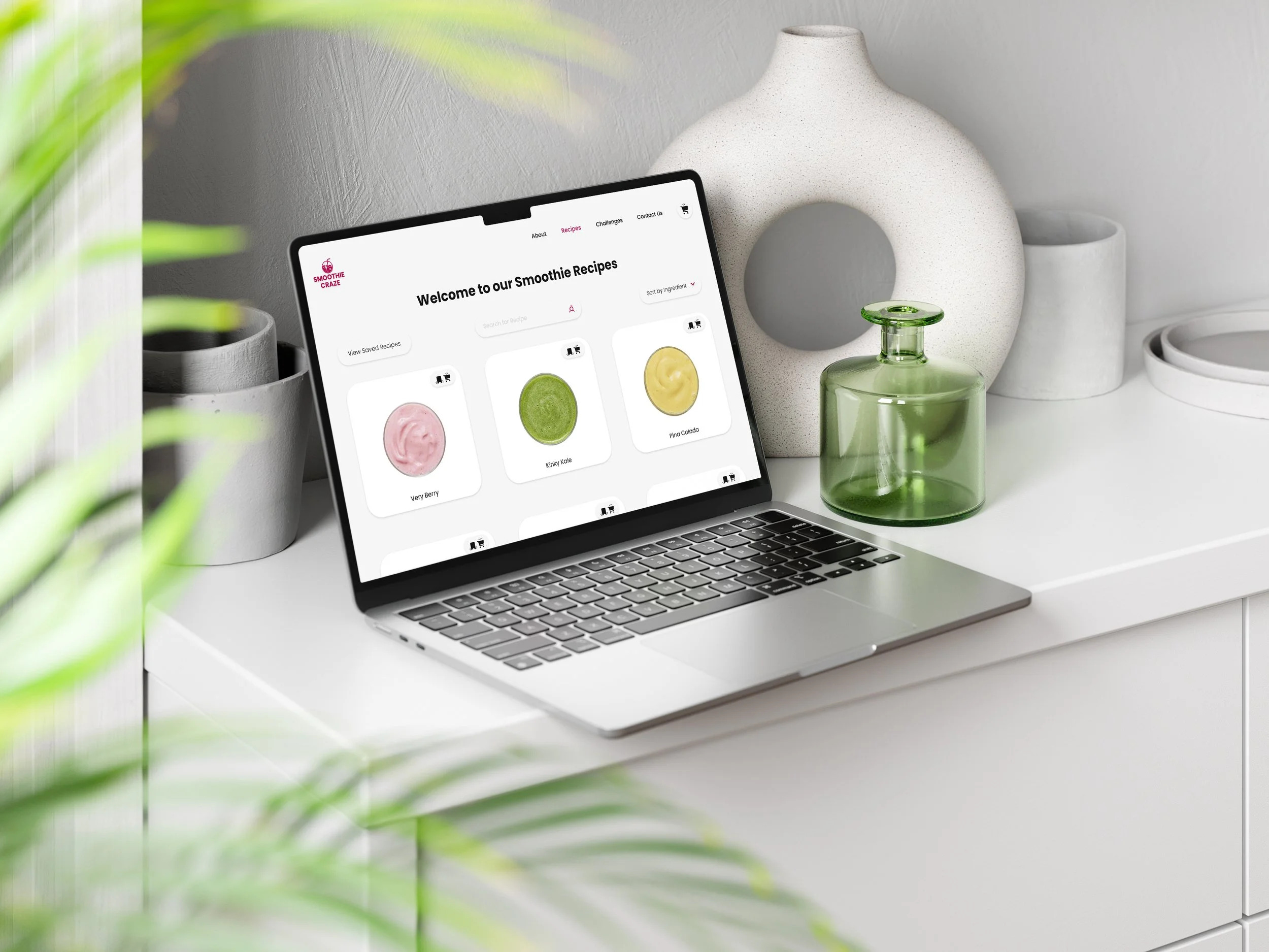 I created a website called Smoothie Craze, focused on healthy smoothies. Users can explore different smoothies, order them, join challenges, and sort by ingredients. Each smoothie includes a recipe with instructions. I also added cool hover effects, where